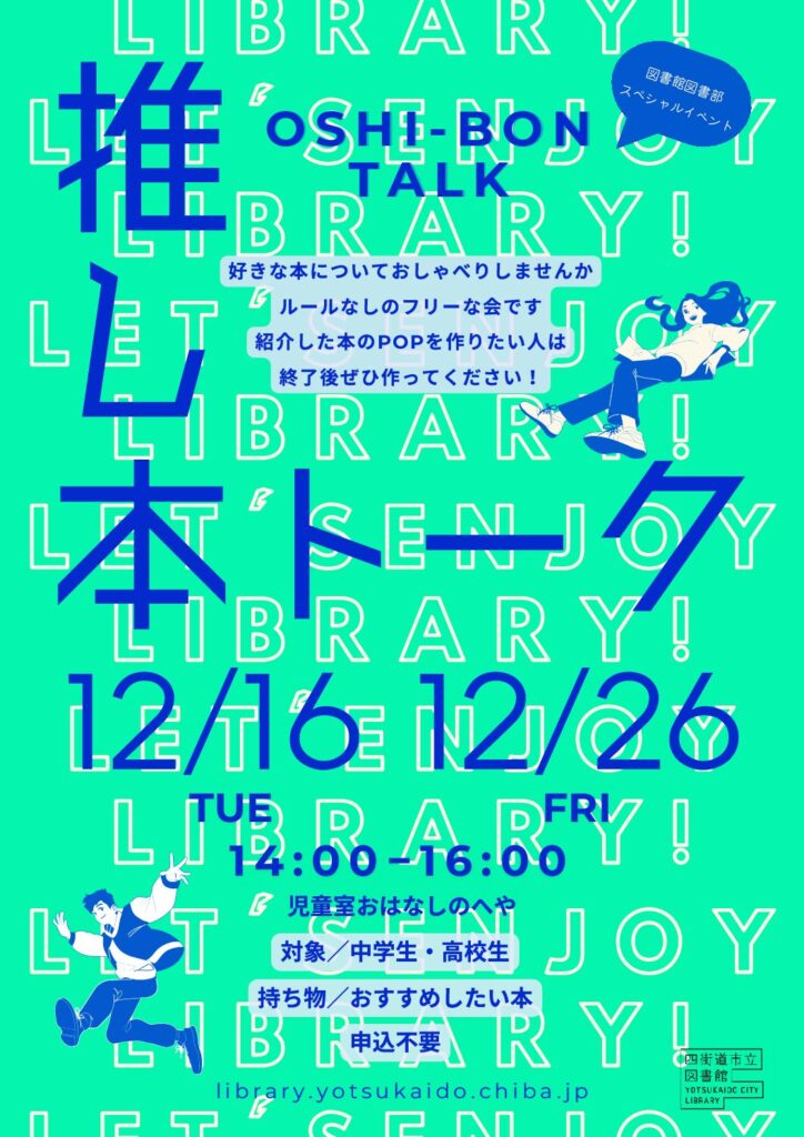 図書部(中高生ボランティア)の、スペシャルイベント会となります。初めての方ももちろん大歓迎です。
