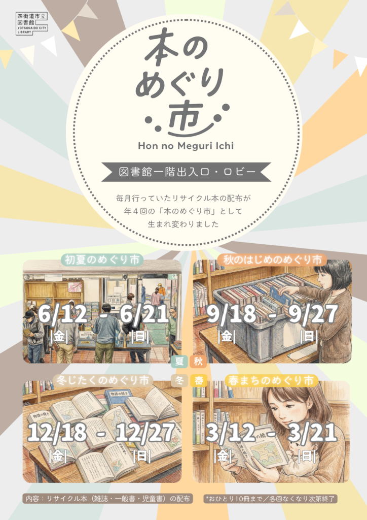 令和8年度「本のめぐり市」(リサイクル本の配布)を下記のとおり開催します。