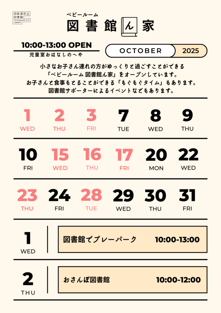 10月の「ベビールーム 図書館ん家」