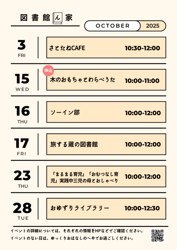 ホームイベント10月の「ベビールーム 図書館ん家」