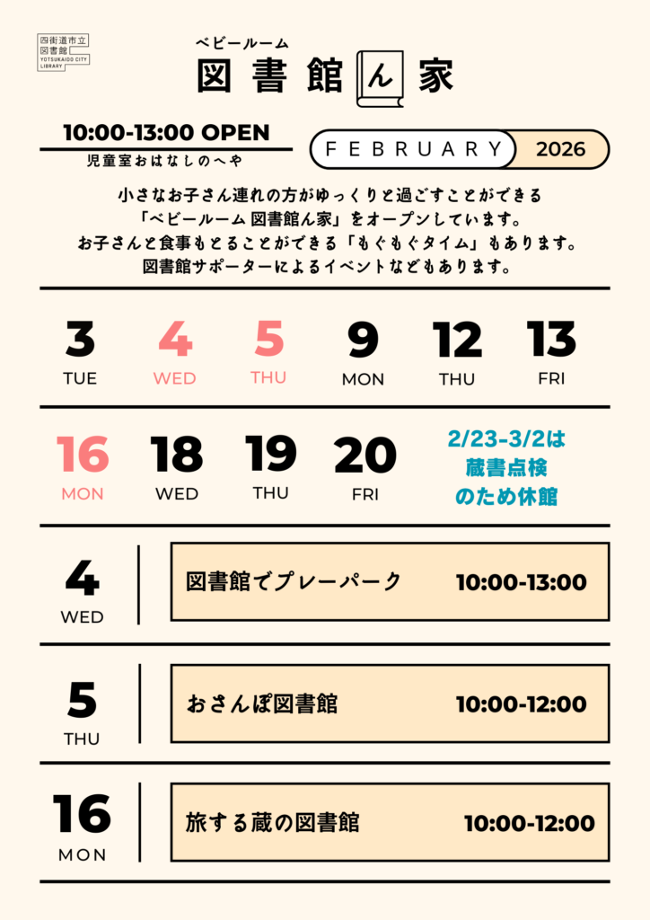 2月の「ベビールーム 図書館ん家」